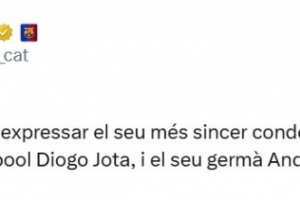 巴薩官推寫道:“巴塞羅那足球俱樂部對(duì)利物浦球員若塔及其兄弟安德烈的去世表示深切哀悼,愿他們安息。”