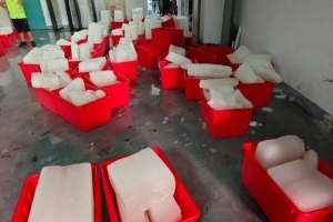 7月6日晚19:30鎮(zhèn)江隊(duì)對陣泰州隊(duì),75000公斤冰塊堆成冰墻,2900桶飲用水將在30個(gè)點(diǎn)位發(fā)放,現(xiàn)場還將免費(fèi)為觀眾提供供扇子、風(fēng)油精等防暑降溫物品。