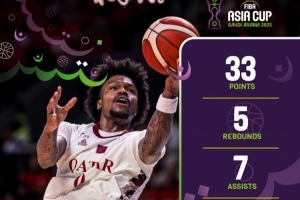 不過卡塔爾男籃的歸化球員、上海外援古德溫打出精彩表現(xiàn),出戰(zhàn)35分鐘09秒,17投10中,三分9投4中,罰球11罰9中,砍下33分5籃板7助攻2搶斷,不過也有6次失誤。