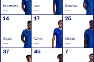 后衛(wèi)11人:3-庫庫雷利亞、4-阿達拉比奧尤、5-巴迪亞西勒、6-科爾維爾、23-查洛巴、24-詹姆斯、27-古斯托、29-福法納、30-安塞爾米諾、34-阿奇姆彭、哈托