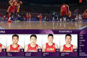 中國(guó)男籃首發(fā):朱俊龍、王俊杰、胡金秋、胡明軒、趙睿。