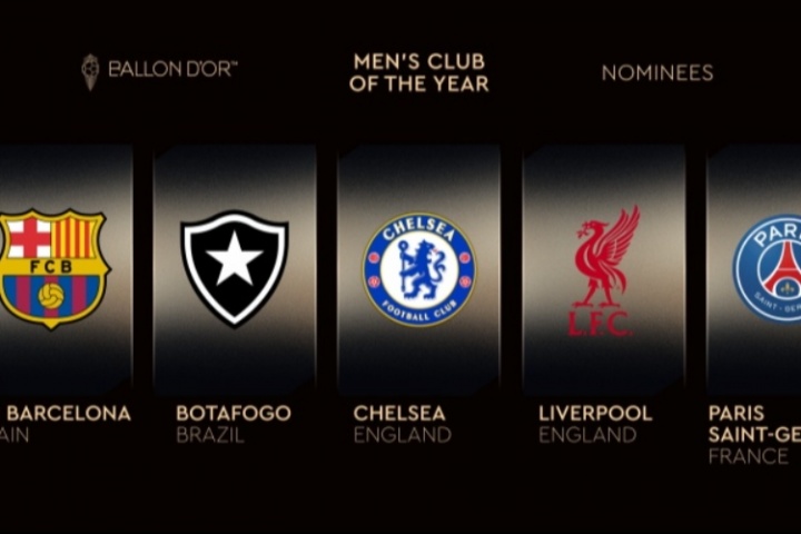 2025年男足賽季最佳俱樂部候選:巴薩(西班牙)、博塔弗戈(巴西)、切爾西(英格蘭)、利物浦(英格蘭)、巴黎圣日耳曼(法國)