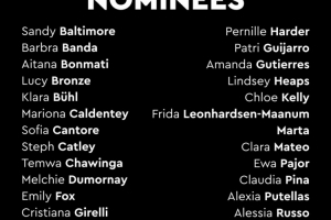 普特拉斯(巴薩/西班牙)、漢娜-漢普頓(切爾西/英格蘭)、芭芭拉-班達(里昂/贊比亞)、艾米麗-??怂梗ò⑸{/美國)、克拉拉-馬特奧(巴黎FC/法國)