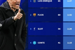 體育資訊8月7日訊 2025年男足最佳教練(克魯伊夫獎)候選人公布,德轉(zhuǎn)也盤點了5名主帥在24/25賽季帶隊場均積分榜,具體如下: