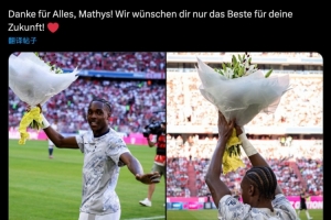 拜仁官方社媒寫(xiě)道:開(kāi)球前,拜仁正式送別馬蒂斯-特爾!