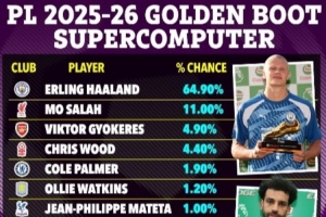 體育資訊8月8日訊 根據(jù)《太陽(yáng)報(bào)》報(bào)道,超算預(yù)測(cè)新賽季英超射手榜,哈蘭德有64.9%的概率拿到金靴,薩拉赫11%第二。