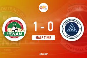 上半場比賽結(jié)束,河南1-0深圳新鵬城。