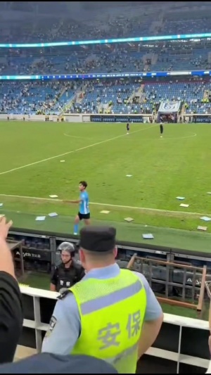 根據(jù)現(xiàn)場拍攝畫面,有情緒激動的球迷跳下看臺。