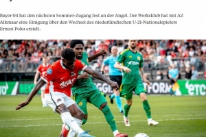 波庫(kù)目前效力于阿爾克馬爾,兩家俱樂(lè)部已經(jīng)就轉(zhuǎn)會(huì)事宜達(dá)成一致,球員只需通過(guò)體檢就可加盟。這名21歲的邊鋒將和勒沃庫(kù)森簽約至2030年,轉(zhuǎn)會(huì)費(fèi)約為1000萬(wàn)歐。
