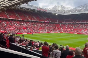 佛羅倫薩門將德赫亞重返老特拉福德,他在場上進(jìn)行賽前熱身時(shí),全場球迷們?yōu)樗蜕险坡暋?/p>