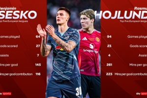 體育資訊8月9日訊 曼聯(lián)今天官宣簽下塞斯科,天空體育隨后對(duì)比了他與霍伊倫在五大聯(lián)賽的數(shù)據(jù)。