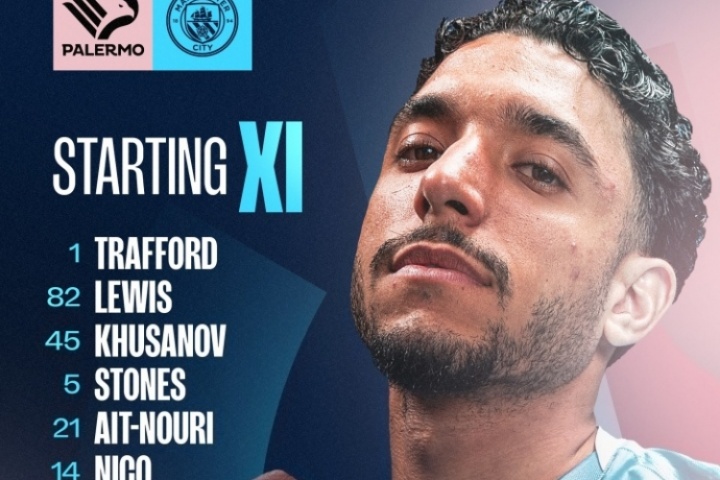 曼城首發(fā):1-特拉福德、82-劉易斯、45-胡桑諾夫、5-斯通斯、21-努里、14-尼科-岡薩雷斯、33-奧賴利、52-鮑勃、29-謝爾基、7-馬爾穆什、9-哈蘭德