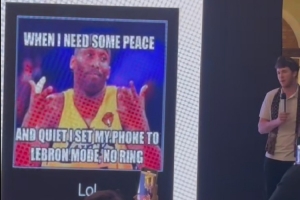 2012年,13歲的里夫斯在社媒發(fā)推,配圖是科比攤手,配文則是:“當(dāng)我想安靜下來(lái)的時(shí)候,我會(huì)將手機(jī)設(shè)置為勒布朗模式,不響鈴。哈哈?!保ú豁戔?,No Ring,沒戒指。當(dāng)時(shí)詹姆斯距離獲得自己的第一個(gè)總冠軍還有2個(gè)月的時(shí)間)。