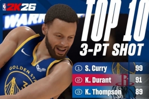 體育資訊8月12日訊 今天,2K26官方曬出了新賽季三分能力值Top10,庫里以99分高居第一,詳情如下: