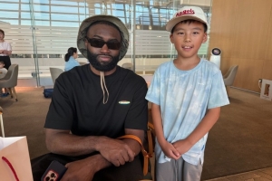 體育資訊8月12日訊 解說員楊毅社媒曬圖,他在首爾轉機時在機場偶遇凱爾特人球星杰倫-布朗。