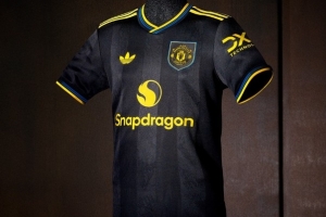曼聯(lián)新賽季二客球衣以黑色為主色調(diào),點(diǎn)綴藍(lán)色和黃色,阿迪達(dá)斯標(biāo)志采用三葉草logo,設(shè)計(jì)靈感則是來源于上賽季90年代的曼聯(lián)球衣。