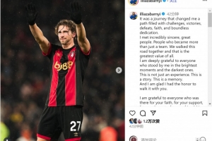 體育資訊8月12日訊 伯恩茅斯22歲中衛(wèi)扎巴爾尼轉(zhuǎn)會(huì)巴黎,他在社交媒體上發(fā)文,與伯恩茅斯告別。