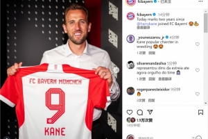 2023年8月12日,凱恩以9500萬(wàn)歐轉(zhuǎn)會(huì)費(fèi)從熱刺加盟拜仁。拜仁官方社媒曬出凱恩加盟時(shí)的照片,回顧那個(gè)特別的時(shí)刻。
