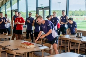 曼聯(lián)中衛(wèi)德里赫特迎來26歲生日,球隊為他準(zhǔn)備了蛋糕,曼聯(lián)社媒曬出隊友們?yōu)樗麘c祝生日的照片。