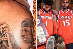 2003年,卡梅隆-安東尼率領(lǐng)雪城大學(xué)奪得NCAA總冠軍,基揚(yáng)將安東尼奪冠后的經(jīng)典海報(bào)中的“CHAMPS(冠軍)”字樣改成了“LEGACY(傳承)”,并紋在了自己的左臂。