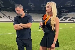 體育資訊08月13日訊 據(jù)《每日郵報(bào)》報(bào)道,在歐聯(lián)杯資格賽取勝的賽后,頓涅茨克礦工主帥阿爾達(dá)-圖蘭在接受球隊(duì)美女記者采訪時(shí),低頭看向另一邊,這被解讀為對(duì)妻子阿斯利漢-多安-圖蘭忠誠(chéng)的表現(xiàn),兩人在2018年結(jié)婚。