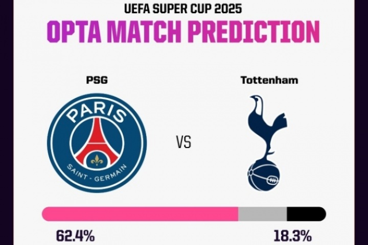 體育資訊08月13日訊 明晨3:00,歐洲超級(jí)杯,巴黎圣日耳曼vs熱刺。賽前,數(shù)據(jù)網(wǎng)站opta預(yù)測(cè)了歐超杯的勝者。