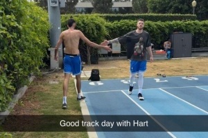體育資訊8月14日訊 今天,霍姆格倫更新個人社媒,曬出了與哈爾滕施泰因合練的照片。