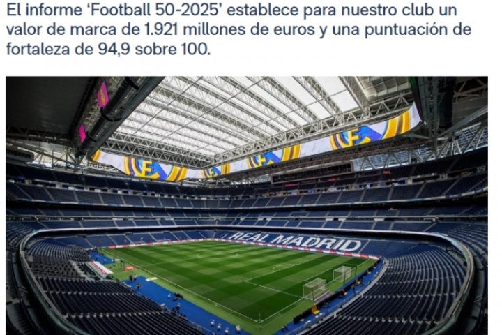 根據品牌評估機構Brand Finance發(fā)布的《Football 50-2025》年度報告,皇家馬德里連續(xù)第二年成為全球最具價值足球品牌,并連續(xù)第四年保持全球最強足球品牌地位。我俱樂部品牌價值增長14%,創(chuàng)下19.21億歐元的新紀錄。