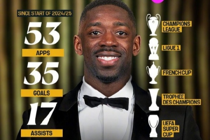 賽后,獻(xiàn)上一次助攻的巴黎前鋒登貝萊獲得本場比賽MVP。