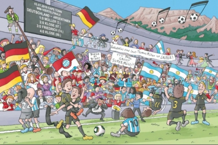 《托馬斯-穆勒:我的隱藏物品書》于8月初出版,共16頁,收錄了穆勒職業(yè)生涯中8個(gè)精彩時(shí)刻的圖畫版本,讀者在閱讀時(shí)可以在圖畫中尋找數(shù)量極多的信息和彩蛋。這本書旨在探索、紀(jì)念,以及最重要的——帶來歡笑。