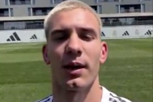 體育資訊8月14日訊 北京時間今晚19點,皇馬新援馬斯坦托諾在皇馬正式亮相?;蜀R社媒曬出馬斯坦托諾向球迷問好的視頻。
