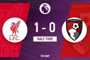 體育資訊8月16日訊 25-26賽季英超揭幕戰(zhàn),衛(wèi)冕冠軍利物浦坐鎮(zhèn)主場安菲爾德迎戰(zhàn)伯恩茅斯。上半場,薩拉赫、范迪克造險(xiǎn),?;倏诉B場破門并致敬若塔。半場戰(zhàn)罷,利物浦1-0伯恩茅斯。
