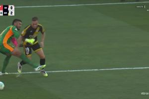 第42分鐘,加扎尼加禁區(qū)內(nèi)放倒德弗魯托斯,裁判果斷判罰點球并向加扎尼加出示紅牌。巴列卡諾球員帕拉松點射破門