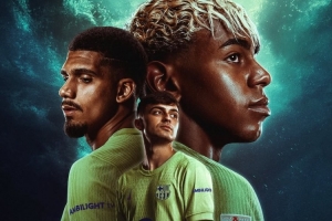 巴薩官方社媒發(fā)布了西甲首輪比賽海報,亞馬爾、阿勞霍、佩德里出鏡。