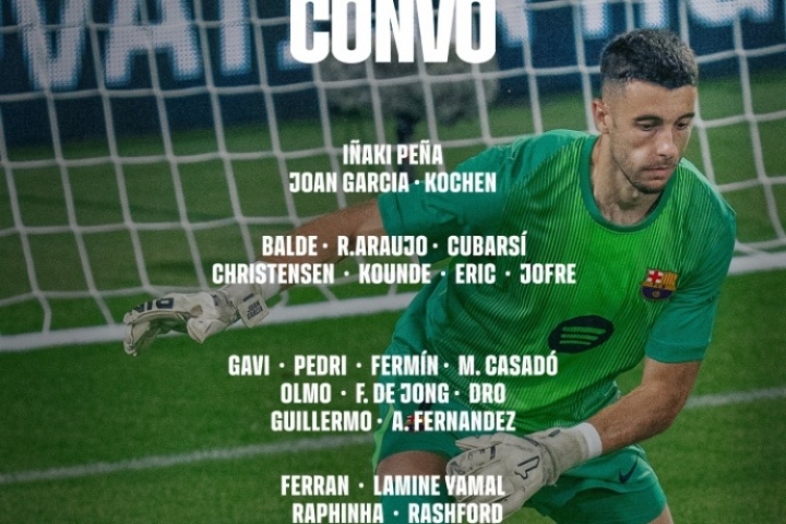 體育資訊08月16日訊 巴薩公布西甲首輪大名單,加西亞、拉什福德在列,無(wú)什琴斯尼萊萬(wàn)。