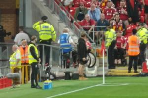 但球場中的警察行動(dòng)非常迅速,有球迷拍到,這位輪椅球迷很快被要求離場,他在眾人的注視下灰溜溜的被志愿者推出通道。