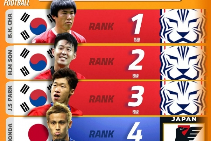 體育資訊08月16日訊 媒體mad football評選了亞洲歷史最佳球員,無一名中國球員入選,韓國球員霸榜前三。