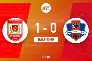 上半場比賽結(jié)束,長春亞泰主場暫時1-0領(lǐng)先梅州客家。