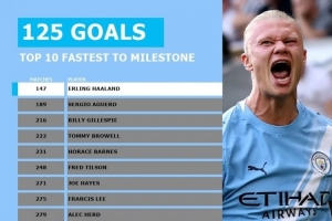 據(jù)媒體統(tǒng)計(jì),哈蘭德加盟曼城以來(lái)出戰(zhàn)147場(chǎng)比賽,打進(jìn)125球,成為曼城歷史上最快達(dá)成125球的球員,比第二快的阿圭羅少用42場(chǎng)比賽。