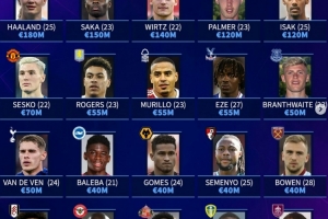 體育資訊8月17日訊 新賽季英超已經(jīng)開幕,德轉(zhuǎn)也盤點(diǎn)了英超20支球隊(duì)中身價最高的球員,其中哈蘭德1.8億歐領(lǐng)銜,具體如下: