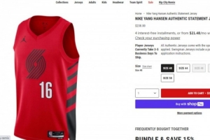 體育資訊7月7日訊 近日據(jù)某波特蘭華人、抖音博主爆料,楊瀚森球員服開始定價(jià)250刀,該抖音博主在線下直營(yíng)店反映“250”不好聽后經(jīng)店家匯報(bào)申請(qǐng)?jiān)撉蛞碌膬r(jià)格就改成了238刀。