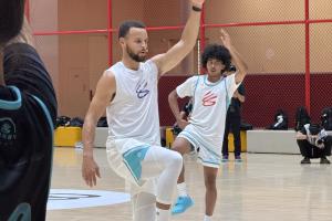 庫里以及庫里品牌簽約的首位中國球員、U19中國男籃主力后衛(wèi)朱正