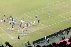 體育資訊08月19日訊 足協(xié)杯半決賽,河南隊點球大戰(zhàn)淘汰成都蓉城,晉級決賽。現(xiàn)場實拍視頻顯示,賽后有球迷在看臺上向場內(nèi)投擲水瓶,砸中了河南隊人員的頭部。