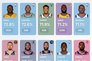 體育資訊8月20日訊 今日,數(shù)據(jù)媒體NBA University曬出一組季后賽籃下得分統(tǒng)計(jì)數(shù)據(jù)。