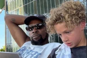 體育資訊8月20日訊 今日美媒Courtside Buzz社媒發(fā)布了歌手Drake的7歲兒子與凱文-杜蘭特一起玩平板的照片。圖片中杜蘭特戴著墨鏡氣質(zhì)獨特。