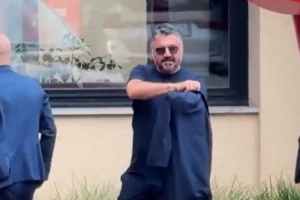 加圖索與阿萊格里、塔雷交談,并與加比亞、里奇、萊奧、普利西奇等球員打招呼。