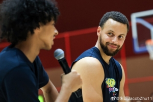 朱正曬出多張與庫里合照,并用中英雙語寫道:“My master,My goat(我的老師,我的英雄)?!?/p> NBA球星中國行
