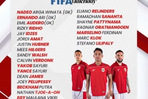 印尼國(guó)家隊(duì)最新一期名單如下: