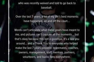 言語無法表達這些年對我意味著什么,照片也無法捕捉所有的瞬間。但沒關(guān)系,因為這不是告別,而是“后會有期”。感謝所有在過去 7 年里幫助過我的人:隊友、教練、老板、管理層、工作人員、導(dǎo)師、合作伙伴、志愿者,以及每一位雄鹿球迷。