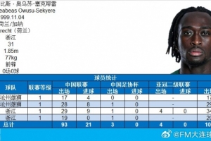 體育資訊8月21日訊 據(jù)博主“FM大連球隊(duì)調(diào)查員”統(tǒng)計(jì),浙江隊(duì)外援奧烏蘇完成了代表中國(guó)俱樂(lè)部各項(xiàng)職業(yè)賽事100場(chǎng)里程碑。